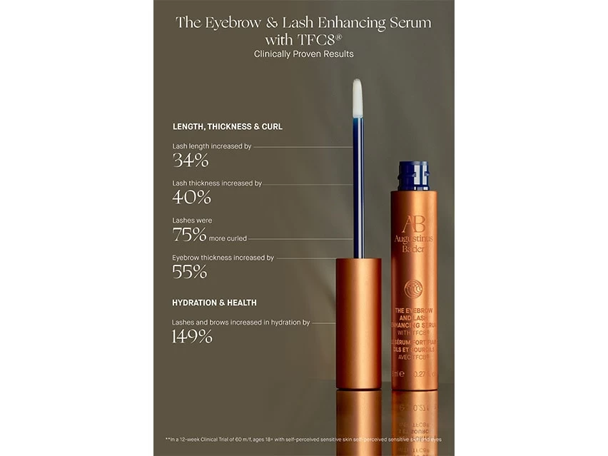 Augustinus Bader The Eyebrow & Lash Enhancing Serum strengthens and revitalizes hair follicles for stronger lashes and brows.