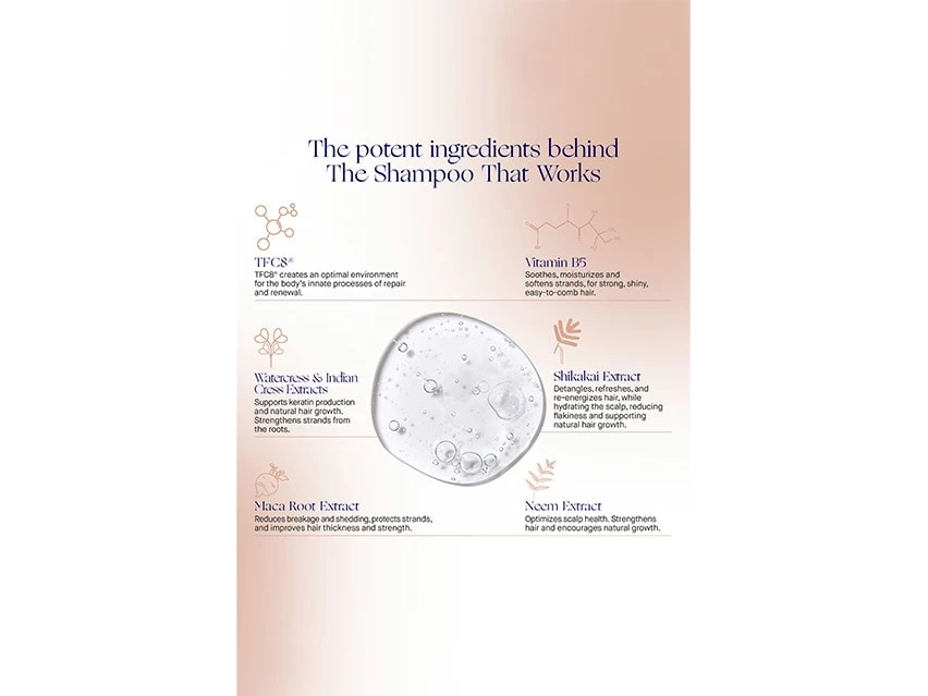 This shampoo revitalizes hair by providing it with strength and shine. It supports the health of your scalp and follicles while promoting keratin production to support the structure of hair fibers. All of this reduces flakiness and gives your hair a smoother and thicker appearance.