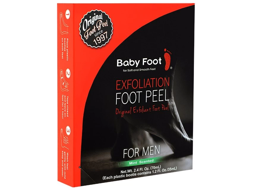 Improve rough, dry feet with Baby Foot Exfoliation Foot Peel for Men.