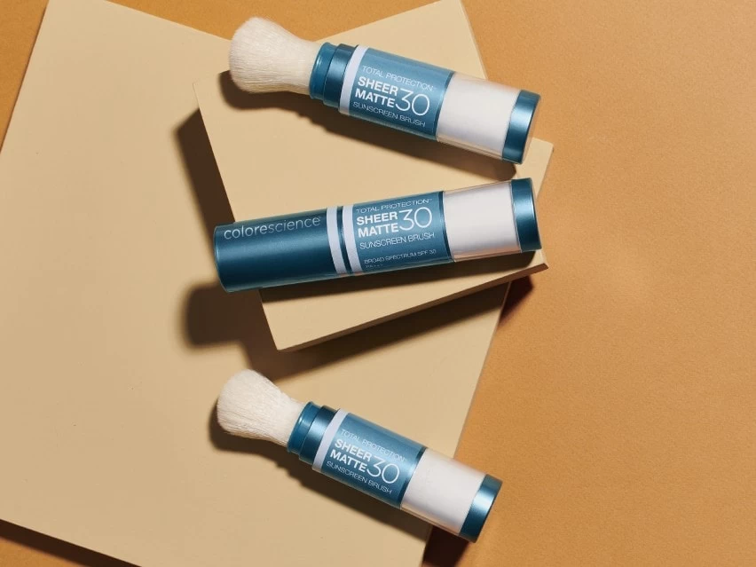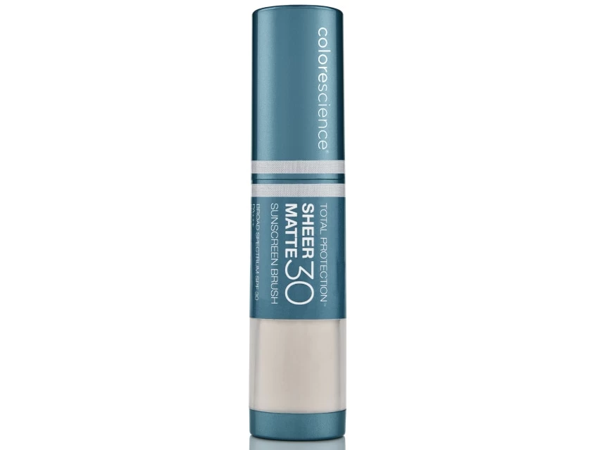 Colorescience Sunforgettable Total Protection Sheer Matte Sunscreen Brush SPF 30 protects skin from sun damage in one convenient, on-the-go application.