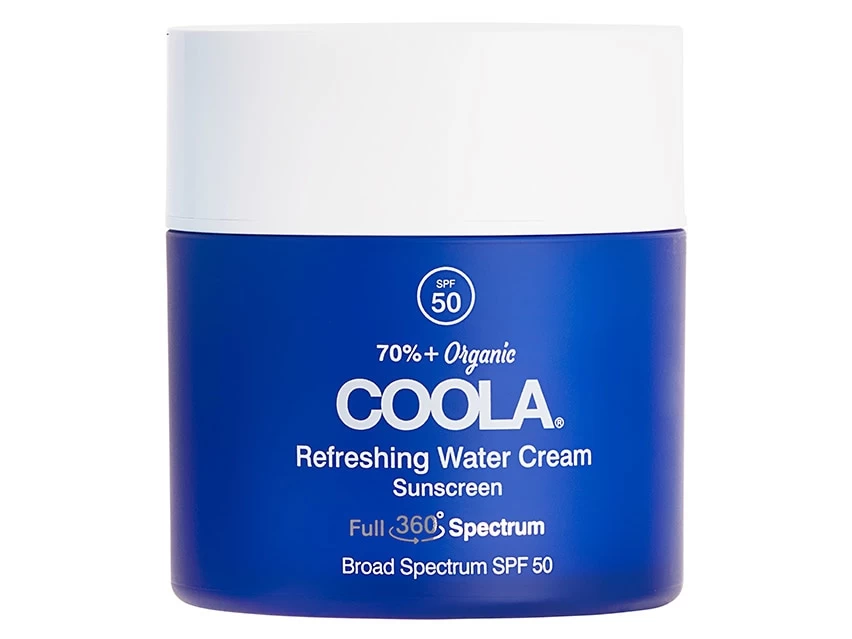 COOLA Full Spectrum 360º Refreshing Water Cream Organic Face Sunscreen SPF 50 protects and hydrates skin.