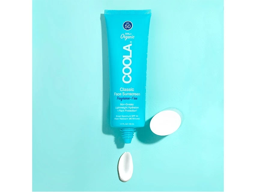 Hydrate and protect your skin from sun damage with COOLA Moisturizing Face SPF 50 Organic Sunscreen Lotion.