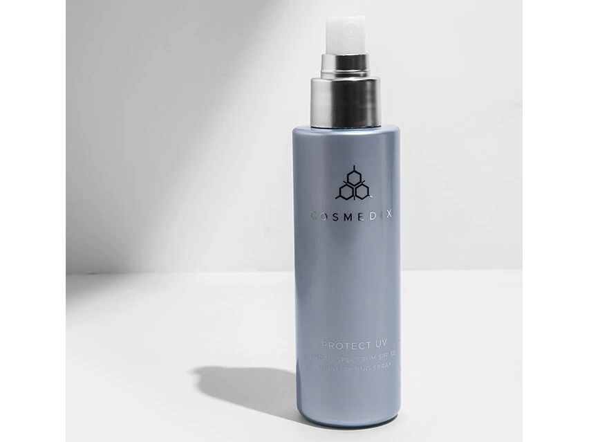 COSMEDIX Protect UV Broad Spectrum SPF 30 Moisturizing Spray provides sheer, daily head-to-toe sun protection.