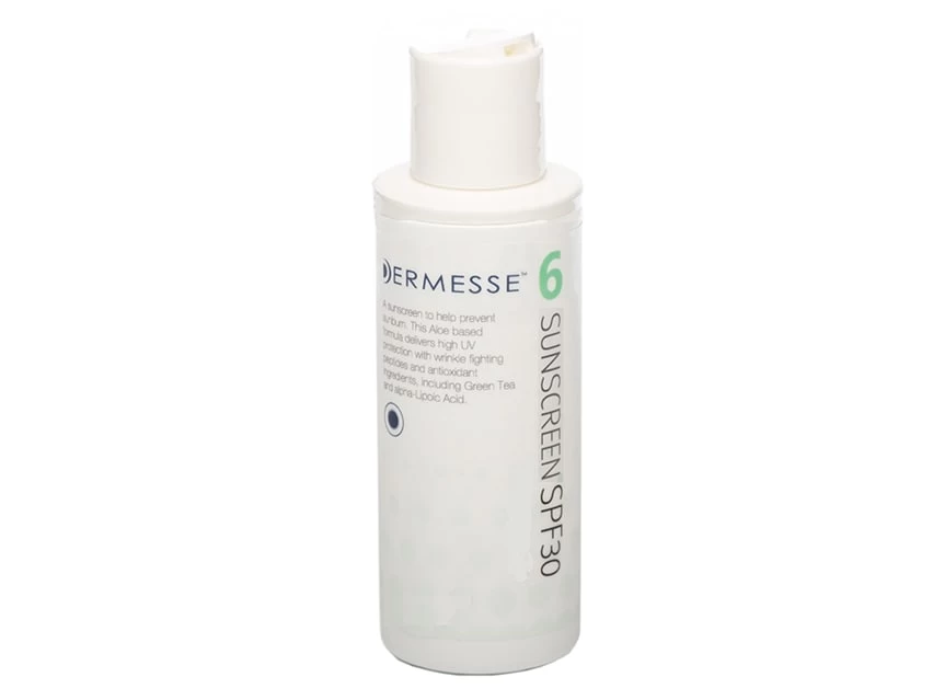 Dermesse Sunscreen SPF 30 is a special sunscreen formula designed to help you prevent sunburn and minimize premature aging due to sun exposure. This Aloe based formula delivers high UV protection with wrinkle-fighting peptides and antioxidant factors, including Green Tea and Lipoic Acid. Limiting your sun exposure, wearing protective clothing and using sunscreens may reduce the risks of skin aging, skin cancer, and other harmful effects of the sun.