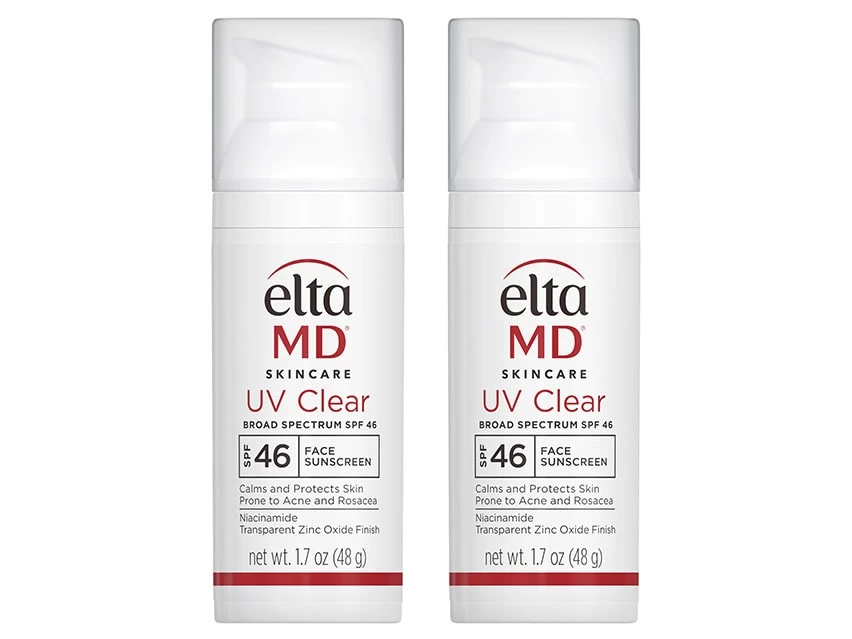 EltaMD UV Clear Untinted Broad-Spectrum SPF 46 Sunscreen Duo helps skin stay clear and protected.
