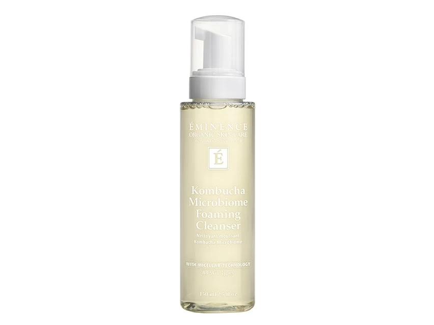 Eminence Organics Kombucha Microbiome Foaming Cleanser cleanses and balances skin’s protective microbiome.