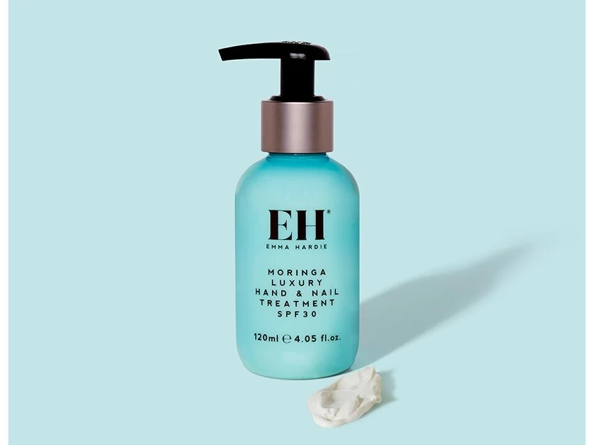 Emma Hardie Moringa Luxury Hand & Nail Treatment SPF 30 nourishes and protects for softer hands and stronger nails.