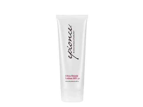 Epionce Ultra Shield Lotion SPF 50 protects against UV rays.