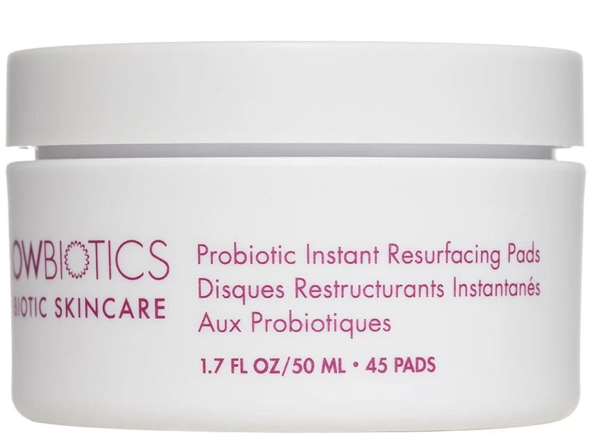GLOWBIOTICS Probiotic Instant Resurfacing Pads are clinical strength, probiotic resurfacing pads that instantly help reveal radiant, youthful-looking skin with fewer lines, wrinkles, pores and blemishes. With regular use, these pads mimic the results of a clinical peel, but with virtually no downtime, irritation or excessive peeling.