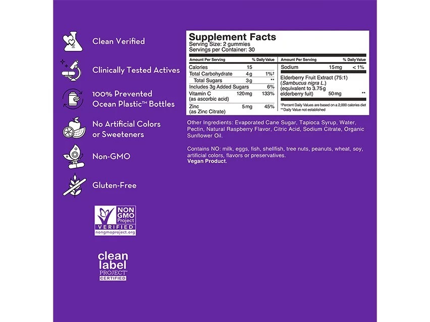 Featuring immunity-boosting ingredients like high-potency vitamin C, zinc and elderberry, these vegan, berry-flavored gummies help strengthen your body’s natural defenses. Designed to boost immunity, support innate and adaptive immune functions and promote health and overall wellbeing, the antioxidant-rich formula supports the immune system while helping clear out harmful free radicals.