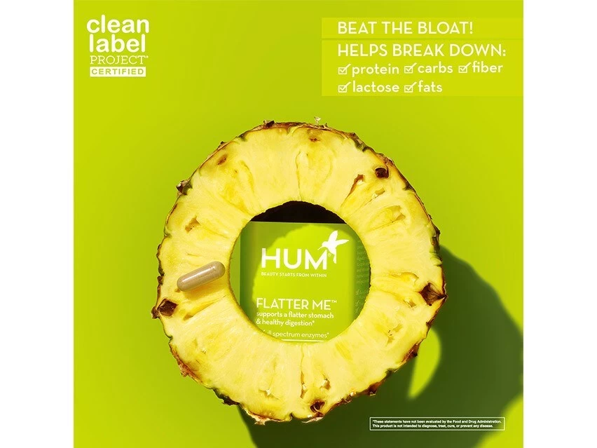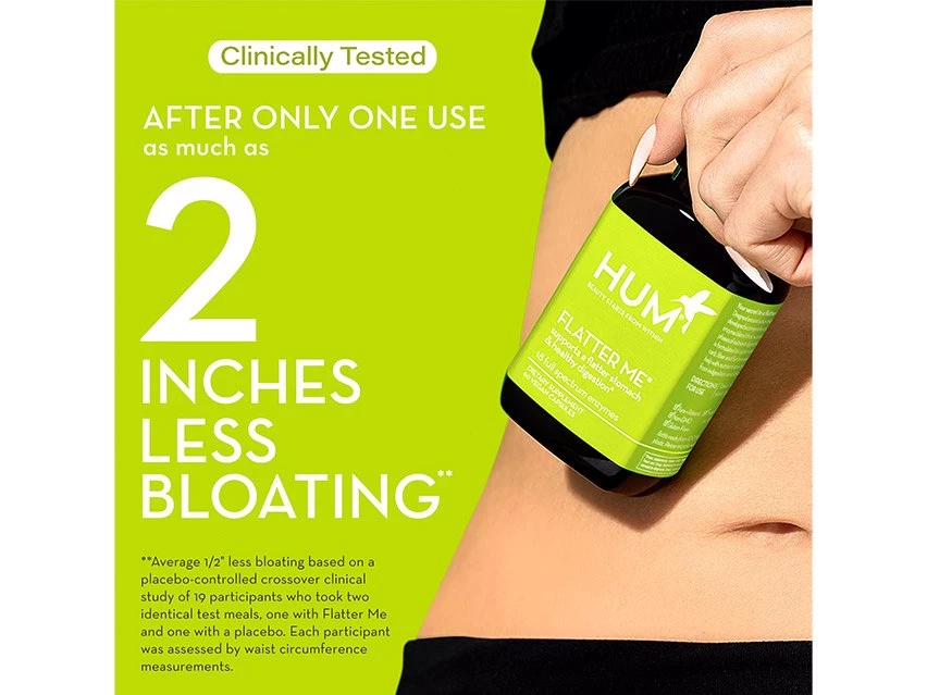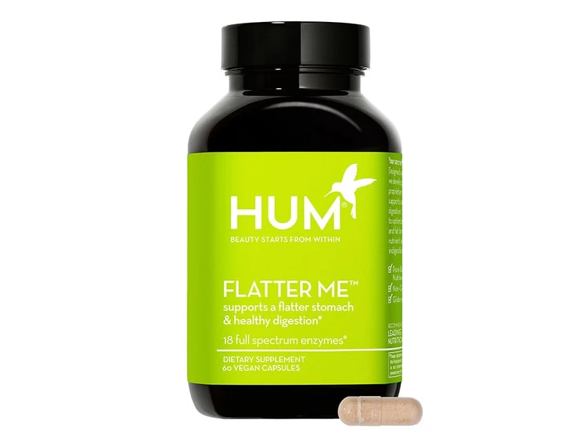 HUM Nutrition Flatter Me Dietary Supplement supports digestion and a flatter stomach.
