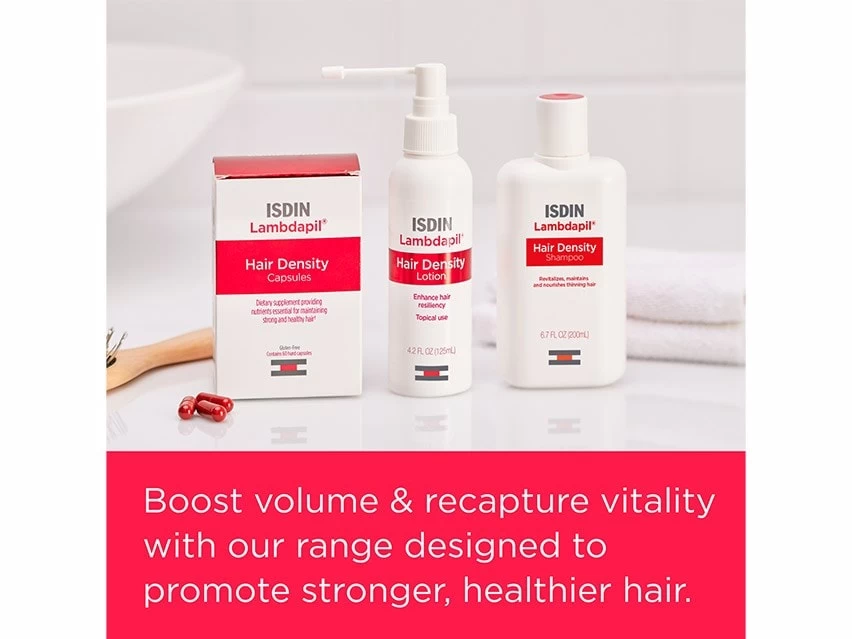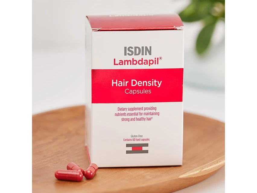 ISDIN Lambdapil Hair Density Daily Hair Supplement for Thinning Hair supports hair for renewed strength and vitality.