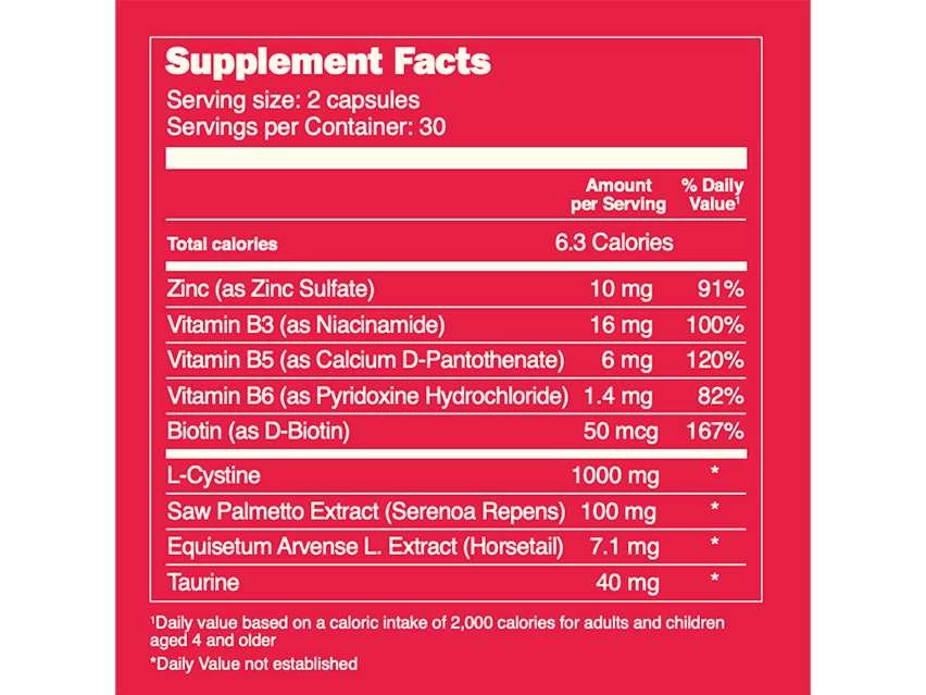 These hair growth vitamins supplements help support healthy, fuller-looking hair that is nourished from the inside out. A smart complex of ingredients including taurine, zinc and B vitamins, helps boost strength and vitality for optimal hair health.