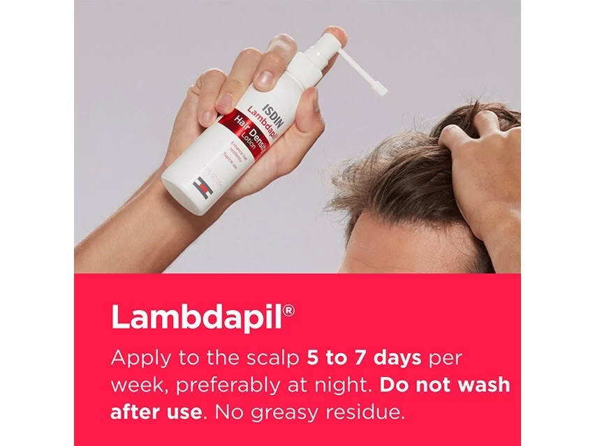 ISDIN Lambdapil Hair Density Thickening & Boosting Leave-on Lotion strengthens hair and provides nutrients to weak hair follicles.