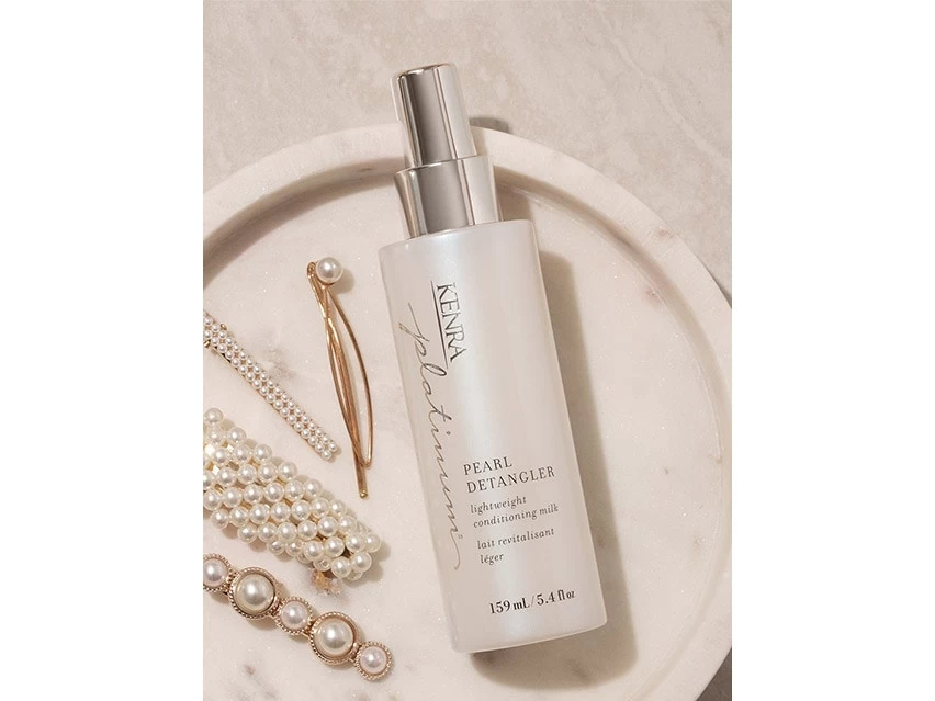 Kenra Professional Platinum Pearl Detangler conditions and moisturizes hair.