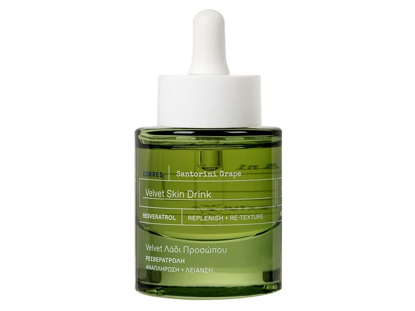 KORRES Santorini Grape Velvet Skin Drink delivers refreshing hydration and a no-shine glow.