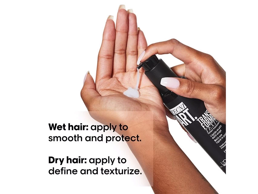 Texturize lengths and achieve a smooth blow dry with L’Oreal Professionel Tecni.Art Transformer Texture Liquid-to-Paste.