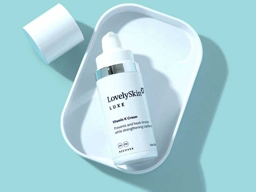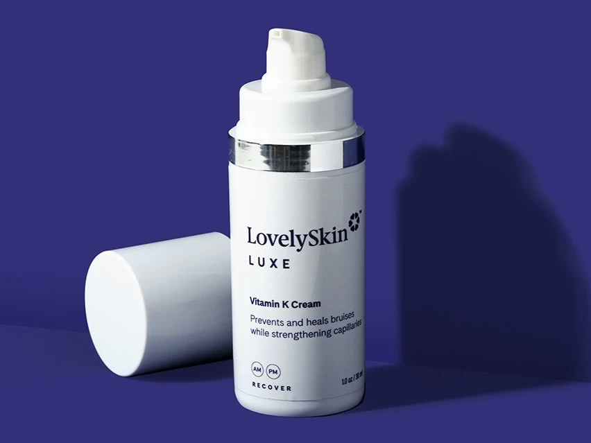 LovelySkin LUXE Vitamin K Cream promotes healing and diminishes discoloration.