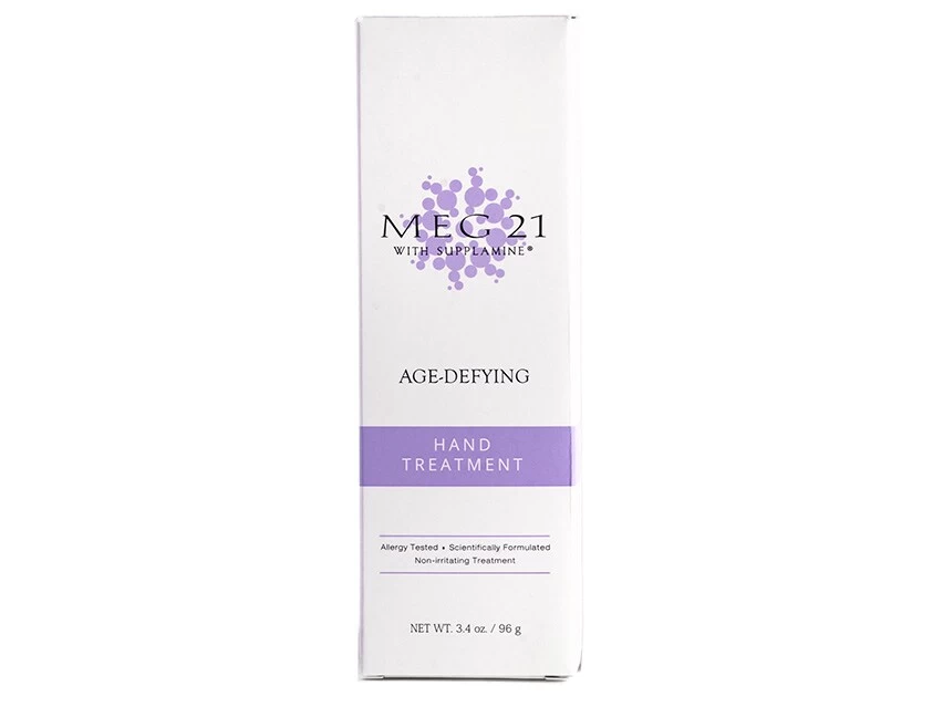 A team of scientists conducting diabetes research at the Fox Chase Research Center in Philadelphia, PA discovered the presence of a toxic substance , 3-deoxyglucosone (3DG), in skin. These scientists then uncovered the link between 3DG, skin aging, collagen depletion, and loss of skin elasticity. Further scientific research led the team to develop Supplamine, a powerful new formulation for addressing the effects of glycation and oxidative stress on skin. Clinical tests demonstrate that Supplamine inhibits the harmful effects of 3DG, reduces the appearance of fine lines and wrinkles, increases moisture and skin glow, and improves overall skin texture, firmness and smoothness. Noticeable results occur in just four weeks or less! MEG 21 Age Defying Hand Treatment is far beyond a good moisturizer. This unique formulation powered by Supplamine revitalizes hands and reduces the appearance of aging by counteracting the effects of glycation and oxidative stress on skin. Supplamine contains an intensive combination of amino acids, anti-inflammatory agents, and anti-oxidants that target fine lines, wrinkles, dryness and uneven skin tones.