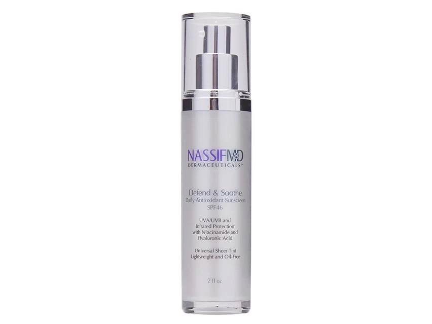 NassifMD® Defend & Soothe Daily Antioxidant Sunscreen SPF 46 protects against sun damage and pollution with an advanced blend of ingredients.