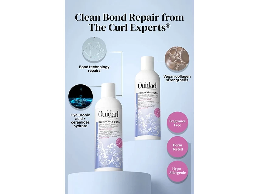 Ouidad Unbreakable Bonds Bond Building Conditioner repairs damaged curls.
