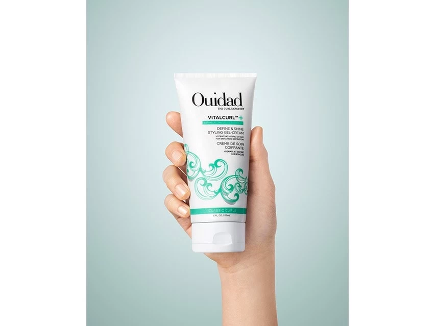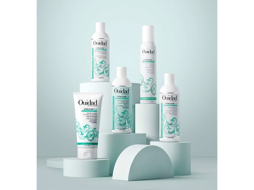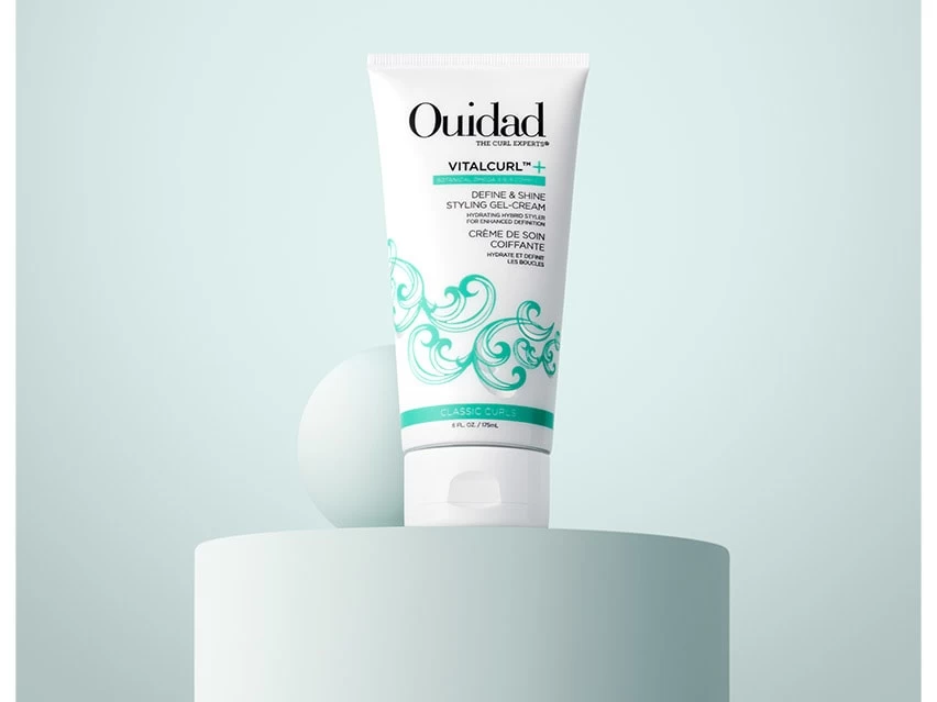 Ouidad VitalCurl+ Define & Shine Styling Gel-Cream locks in natural curl definition and shine.