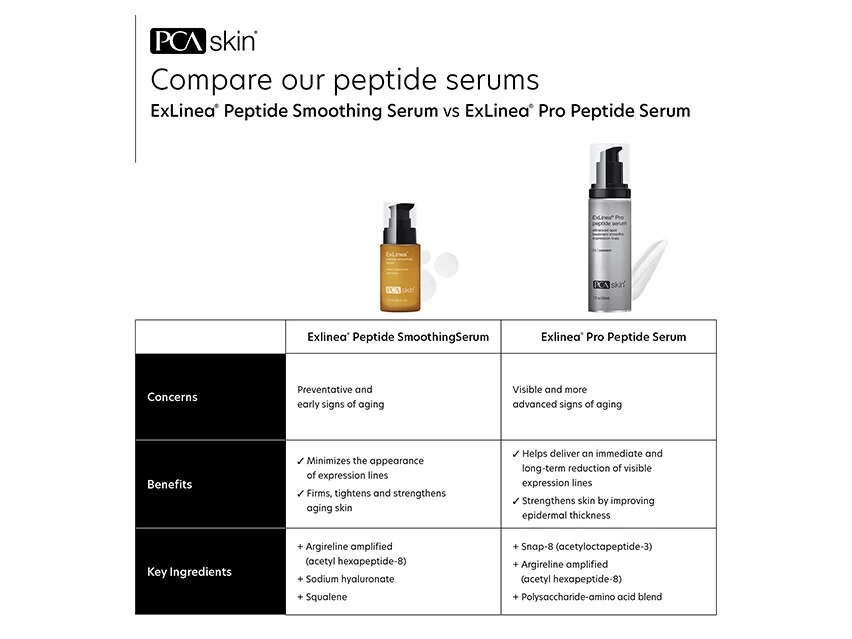 PCA Skin ExLinea Pro Peptide Serum uses proprietary, advanced ingredients to relax and smooth the look of expression lines.