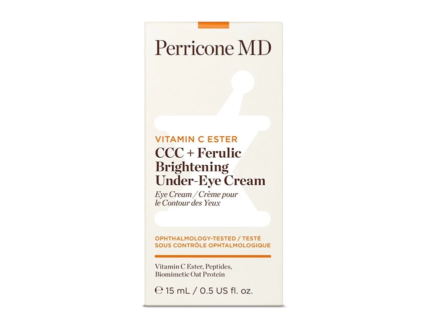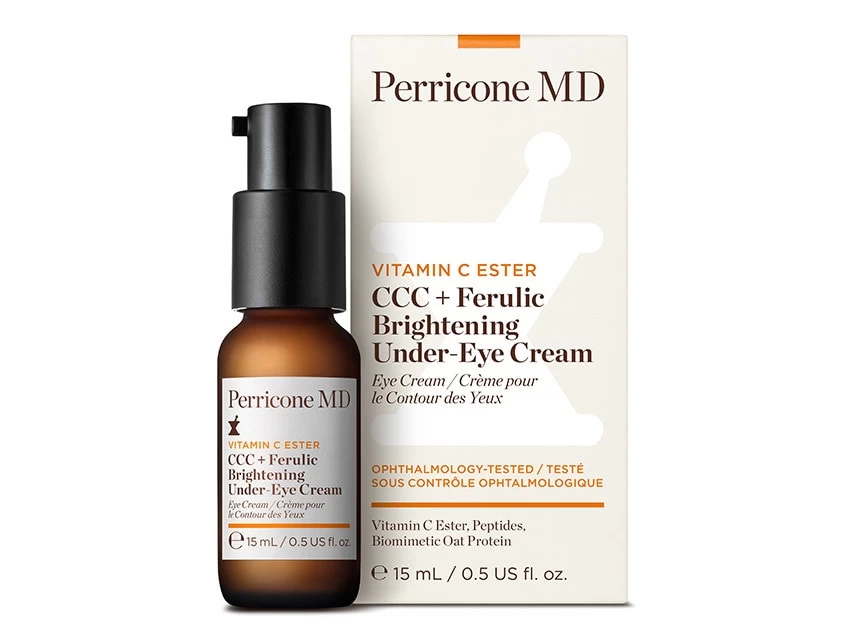 Perricone MD Vitamin C Ester CCC+ Ferulic Brightening Under Eye Cream reduces the look of under-eye discoloration for a more even tone.