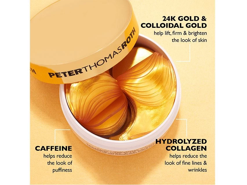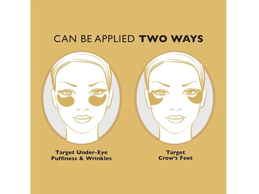 Enriched with pure 24K Gold and Colloidal Gold, these powerful and refreshing eye patches lift and firm the delicate eye contour in just 10 minutes. A unique combination of Colloidal Gold, Caffeine, Hydrolyzed Collagen and humectants work to improve the look of fine lines and puffiness, leaving the eye area smooth, revitalized and radiant.