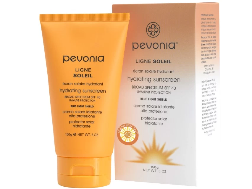 Nourish skin with the natural Pevonia Hydrating Sunscreen SPF 40.