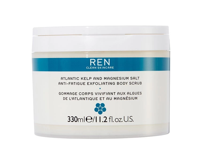REN Clean Skincare Atlantic Kelp and Magnesium Salt Anti-Fatigue Exfoliating Body Scrub exfoliates and replenishes skin with minerals.
