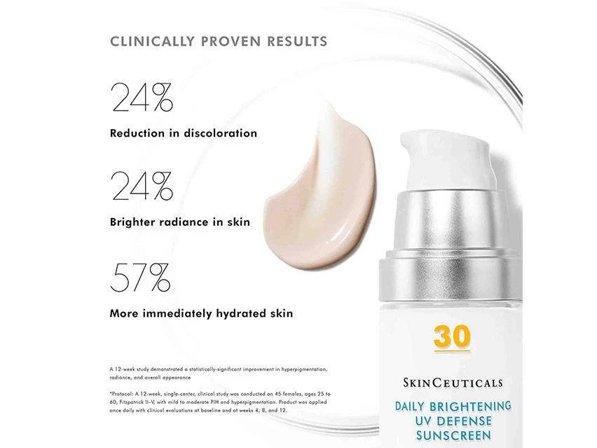 SkinCeuticals Daily Brightening UV Defense Sunscreen SPF 30 protects, hydrates and illuminates skin.