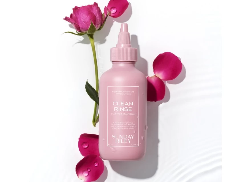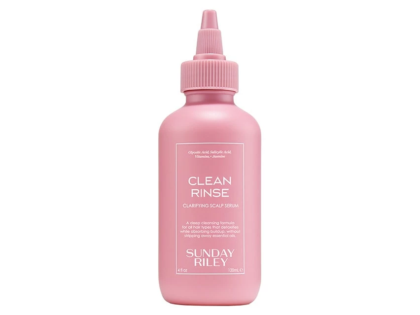 Sunday Riley Clean Rinse Clarifying Scalp Serum removes product build-up for healthier hair growth.