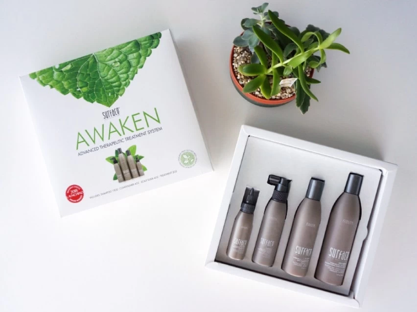 Surface Awaken Box Set strengthens hair while protecting color.