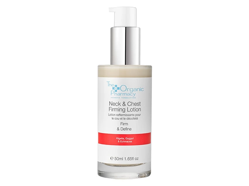 The Organic Pharmacy Neck & Chest Firming Lotion deeply hydrates and tightens skin.