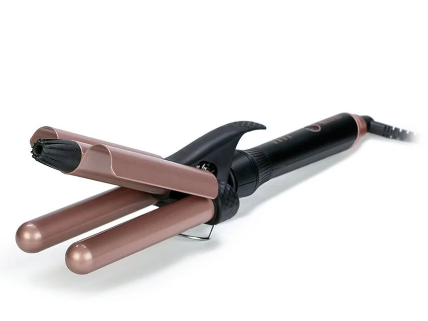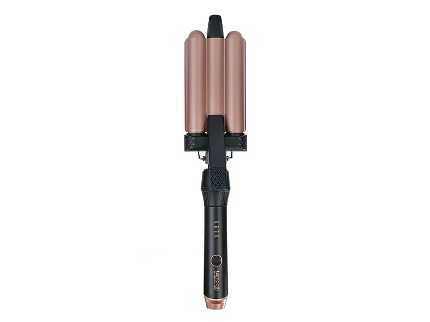 This 1 inch triple barrel wave iron features rose gold ceramic coated plates with ionic technology to reduce frizz and enhance shine. Ideal for creating soft, beachy waves, this iron features 4 preset temperature options for a custom style.