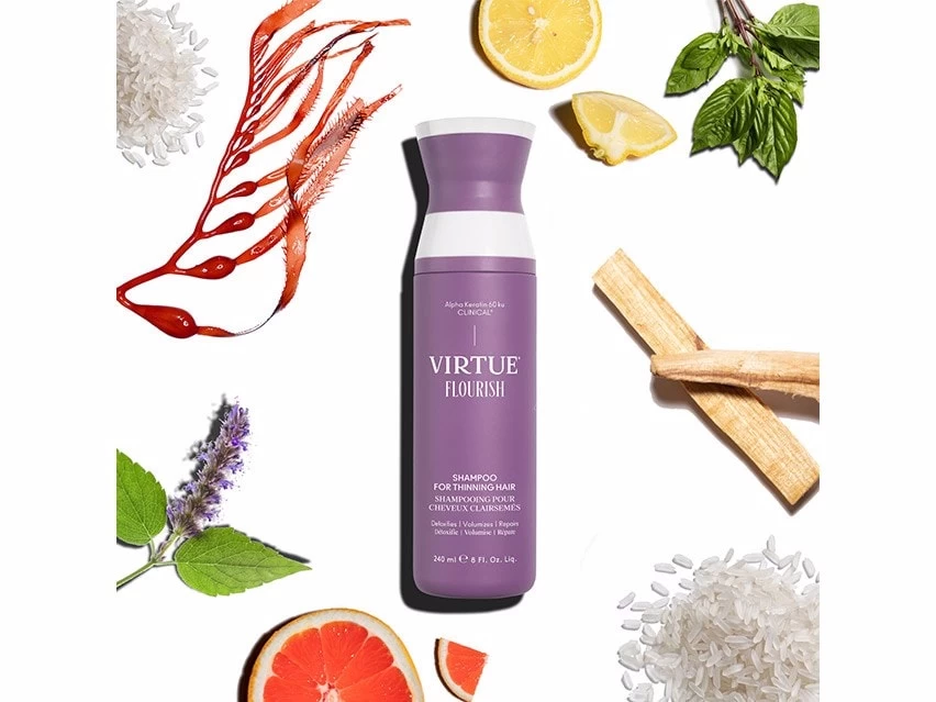 Achieve voluminous, healthy-looking hair with VIRTUE Flourish Shampoo for Thinning Hair.