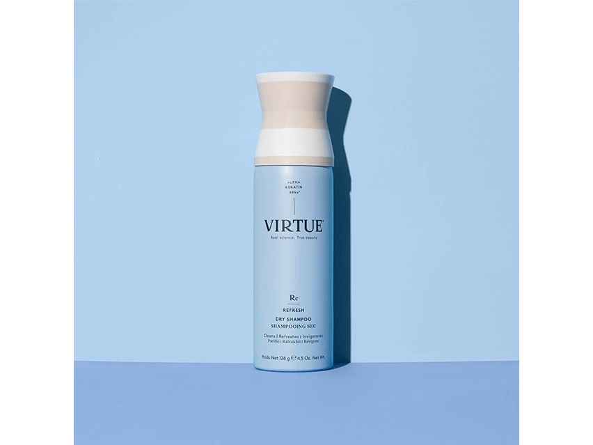 VIRTUE Refresh Dry Shampoo refreshes and cleanses hair with a simple spray.